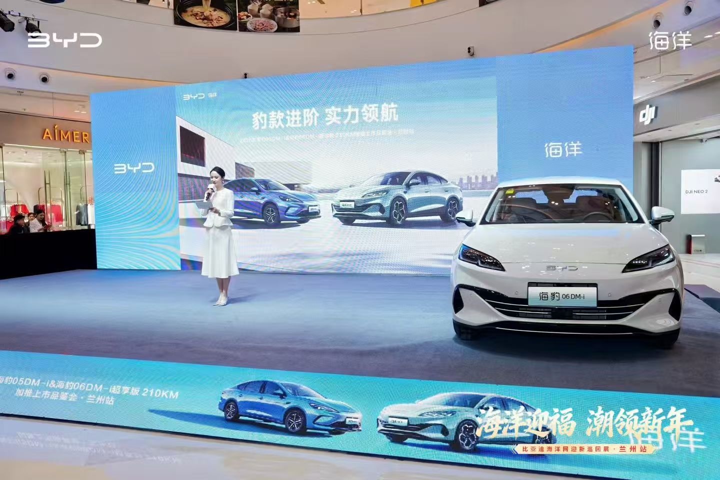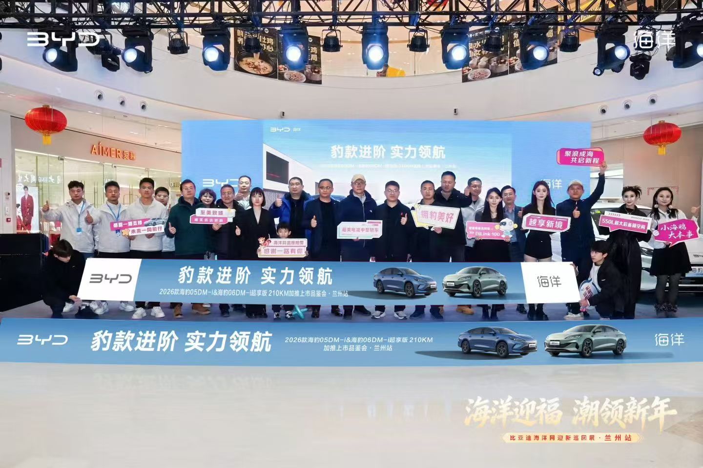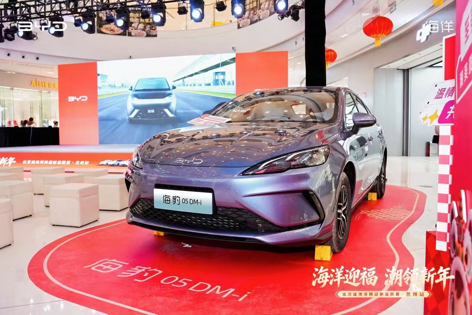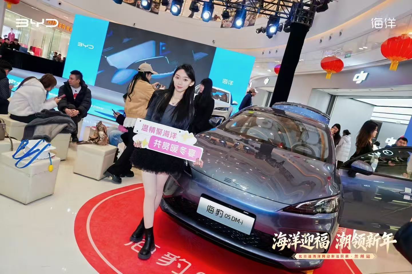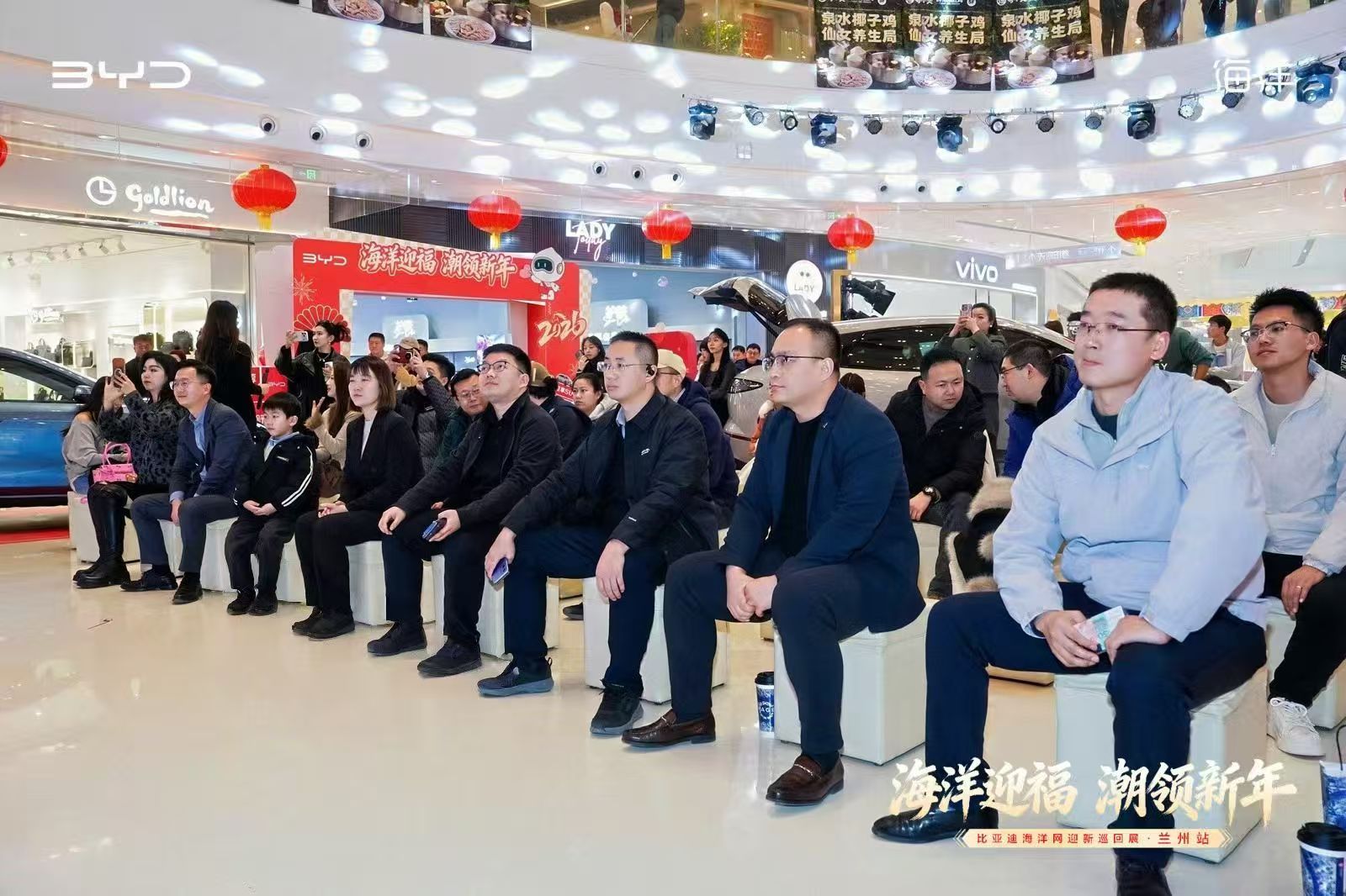 “海洋迎福·潮领新年”兰州站活动现场,比亚迪将商超空间巧妙转变为沉浸式汽车科技展厅。海洋网全系车型集中亮相,形成一道亮丽的风景线。